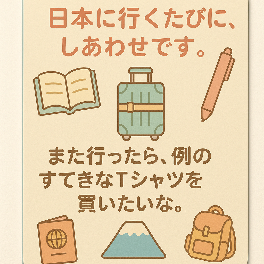 - 日本旅行に行くと、いつもそのグッズを買います。